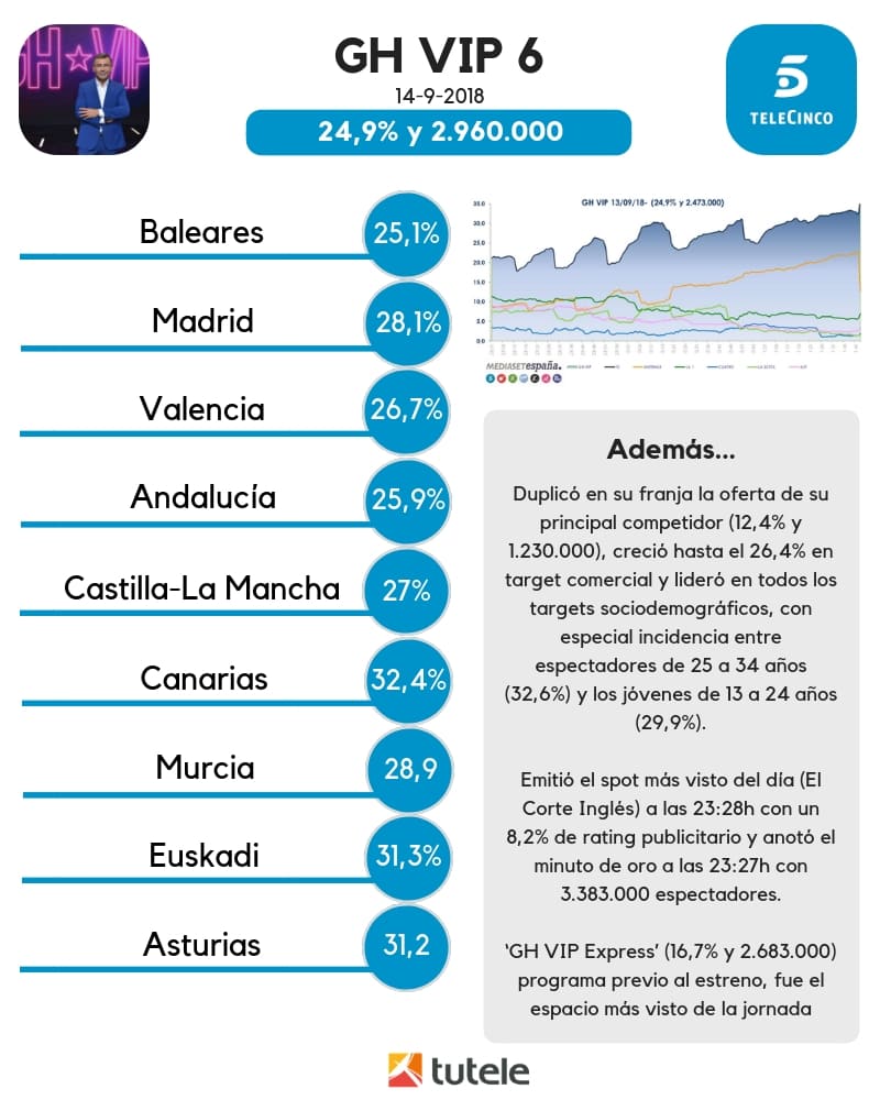 Audiencias TV: El estreno de ‘GH VIP 6’ alcanza el 32,4% en CanariasPublicado por tutele | Sep 14, 2018 0/5 (0 Reseña)
